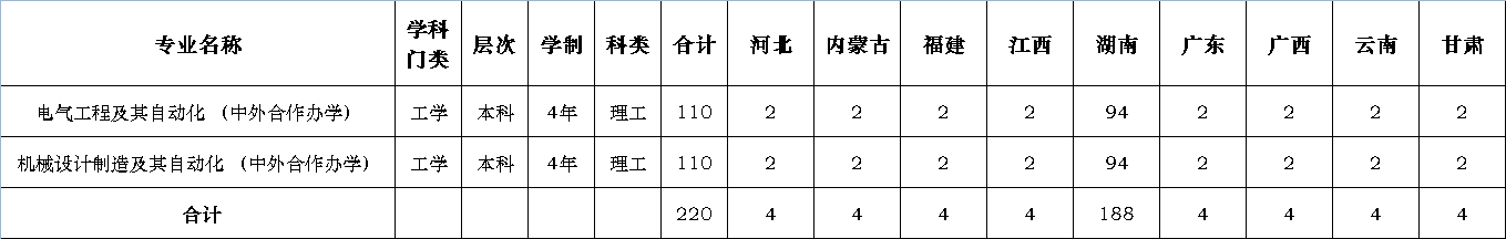 2019年我校将在湖南及其他8省市招收本科新生220人。