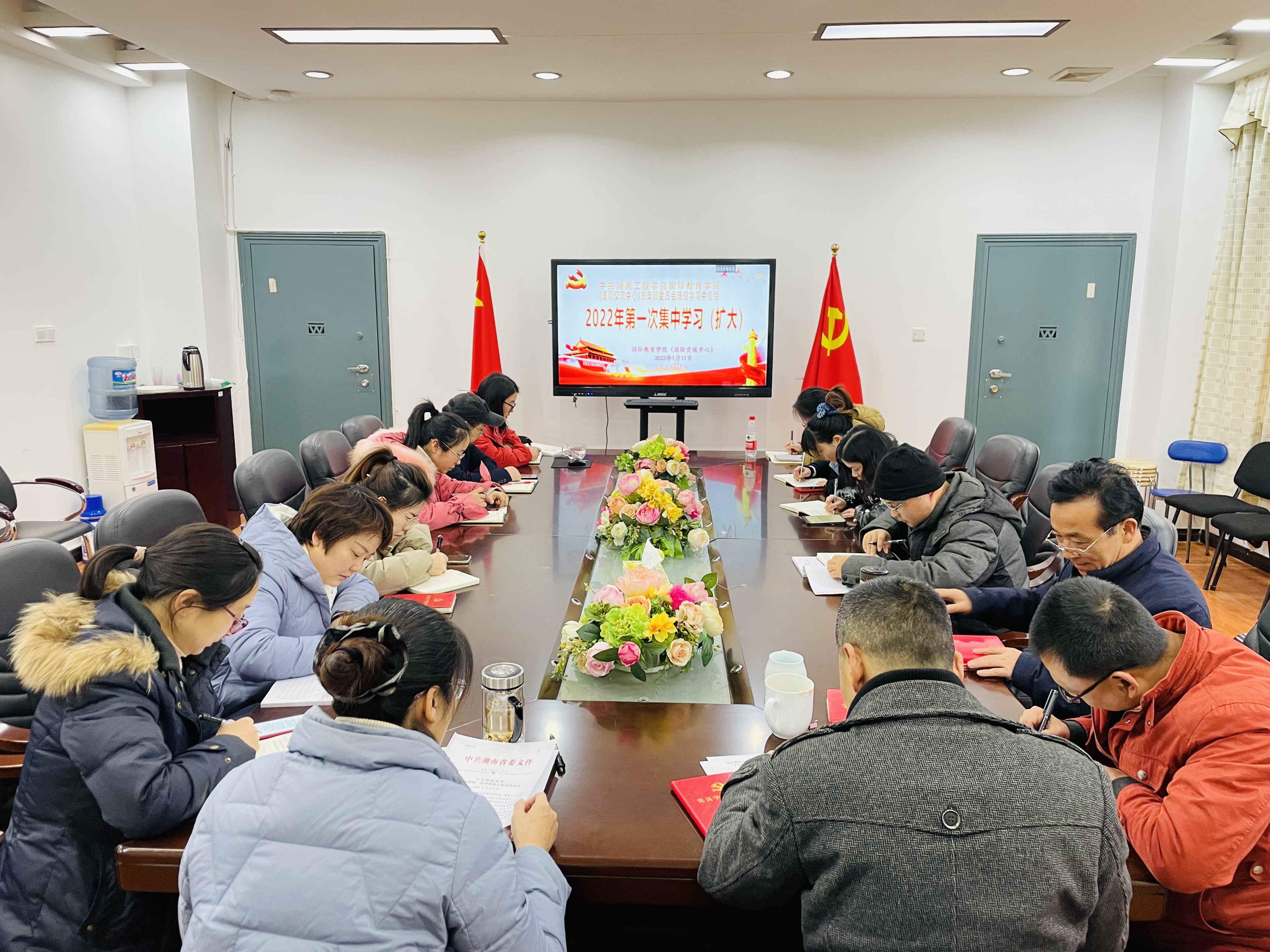 2022年1月11日下午,365英国上市公司(国际交流中心)党总支理论学习中心组在E105会议室开展2022年第一次集中(扩大)学习。会议由党总支书记罗胜杰主持,全体教职工参加学习。