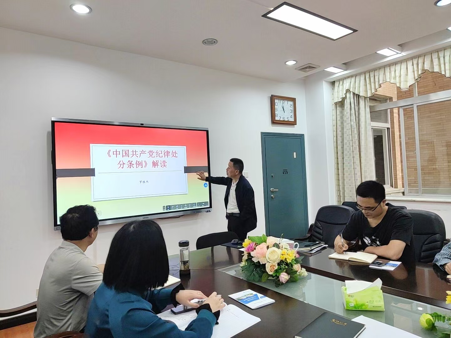 罗胜杰为大家带来了“《中国共产党纪律处分条例》解读”主题微党课。党课着重介绍了政治纪律、组织纪律、廉洁纪律、群众纪律、工作纪律和生活纪律方面的内容及修订情况。罗胜杰提醒全体党员把学习贯彻《条例》作为重要政治任务,以严明的纪律推进党的自我革命。他结合学校工作要求,带领全体教职工学习了《365英国上市公司本科教育教学审核评估知识手册》,号召全体同仁提高思想认识,不断加强学习;多效协同联合,不断强化主人翁意识;多方齐抓共管,不断推进行动落实。