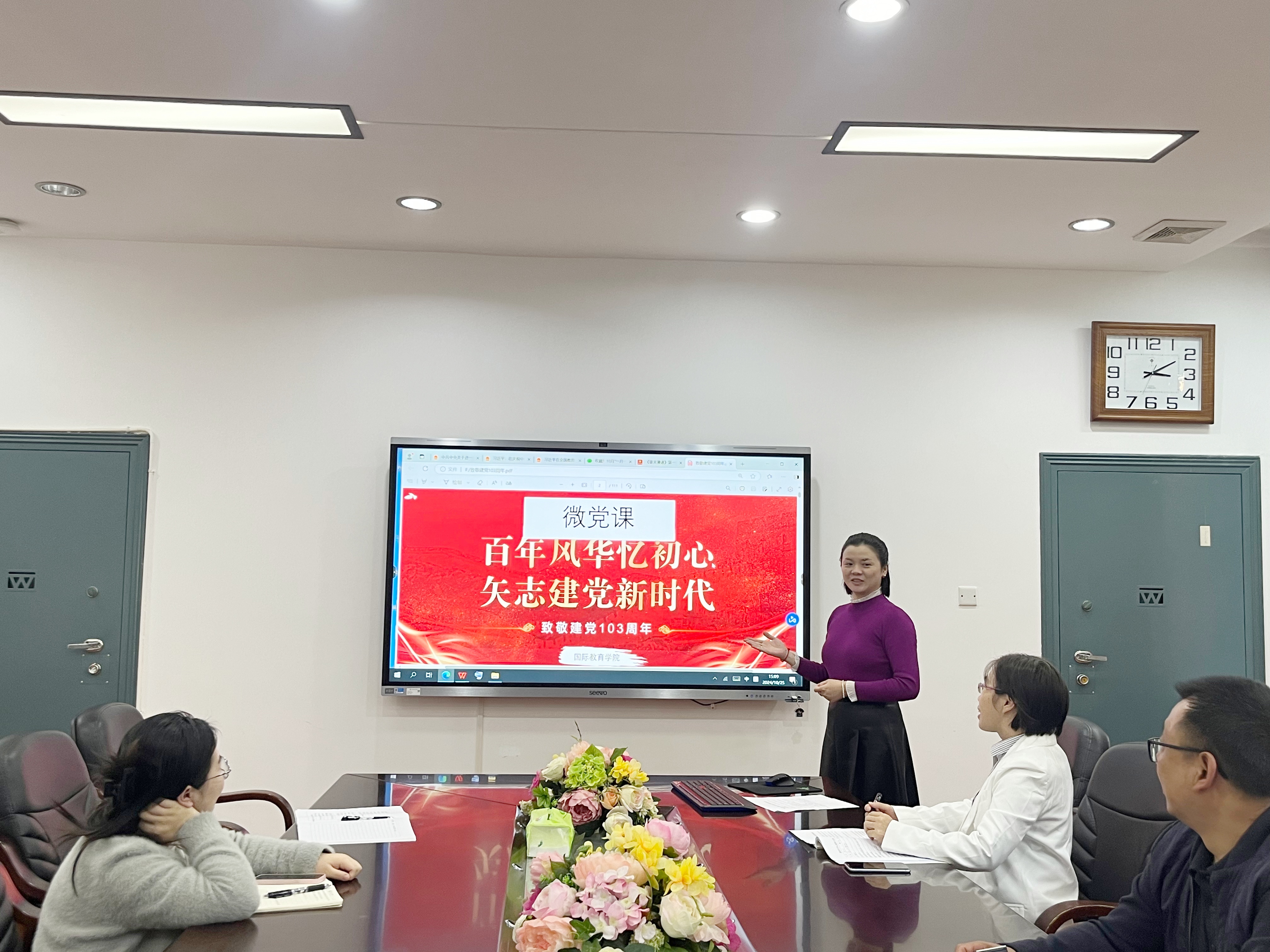 为认真学习贯彻党的二十届三中全会精神,引导激励广大党员始终不忘初心、牢记使命,进一步提升基层党组织战斗堡垒作用,365英国上市公司于10月25日下午,在E105会议室开展党委理论学习中心组第九次集中学习暨教工党支部十月主题党日活动。