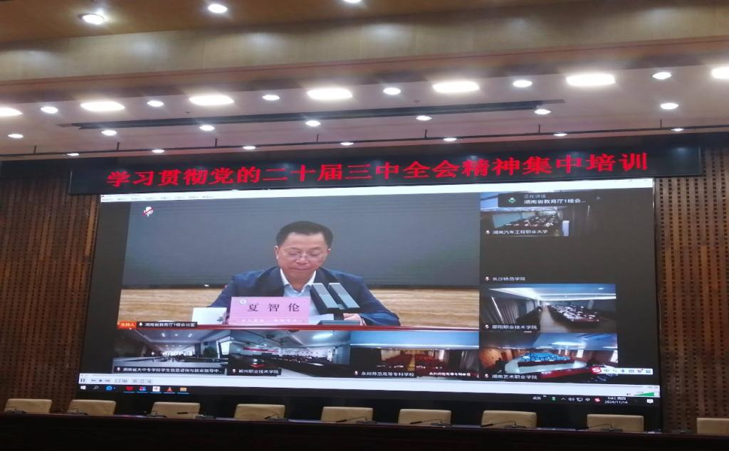 上午采用线上学习方式。教育厅夏智伦厅长讲解了培训目的和培训要求。他强调要充分认识集中培训的重要性和必要性,要围绕学习内容,把握学习要求,要高质量、高标准完成学习任务。随后,省委党校文史教研部主任周爱民给大家作了《进一步全面深化改革 推进中国式现代化——党的二十届三中全会精神解读》的辅导报告。她从全面理解全会的重要意义入手,分析了我国新时代以来取得的重大成就,提出深刻把握进一步深化改革的总体要求,了解重大举措,把握基本要求。
