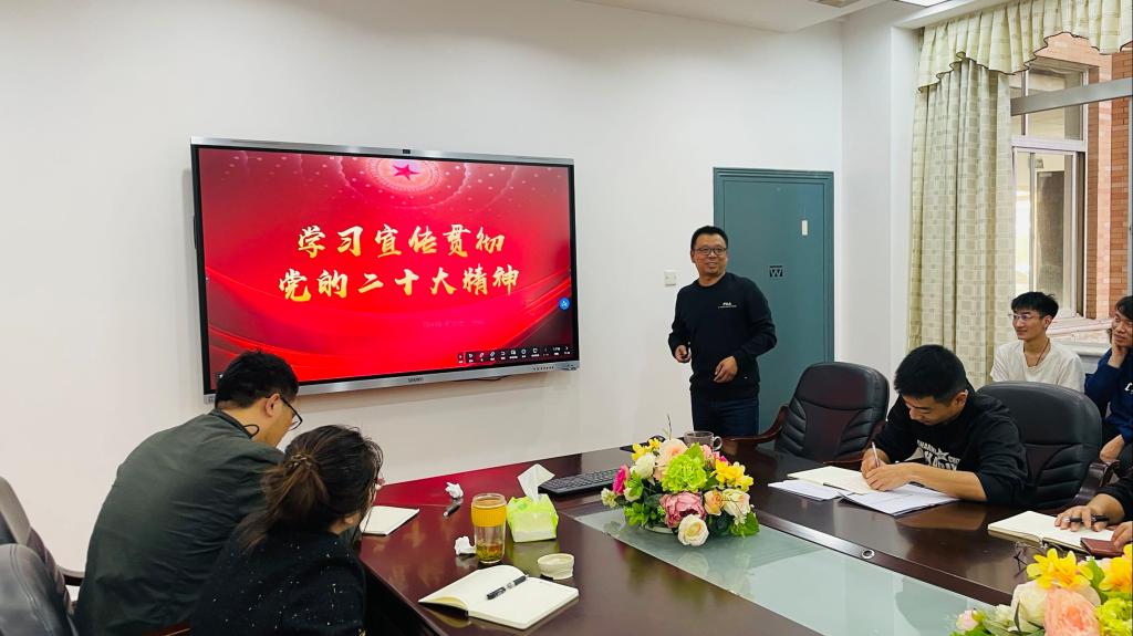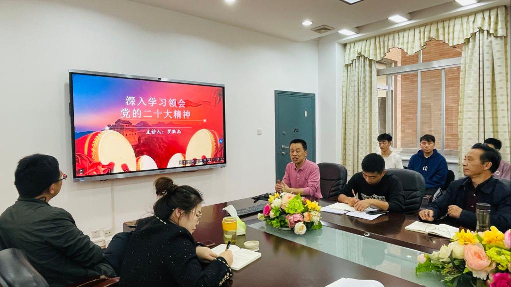 学理论之思,践初心之行。为深入学习宣传贯彻党的二十大精神,11月8日下午,365英国上市公司党总支在E105会议室开展“学习贯彻党的二十大精神”主题党日活动,党总支书记罗胜杰主持,40余名师生党员参加。