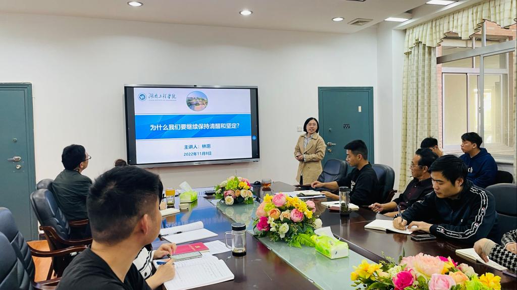 “一路赶考,一路探索。从星星之火到燎原之势,再到“窑洞之问”的两个答案,百年奋斗路,中国共产党已经发展成为世界上最大的马克思主义执政党。”教工党支部书记林愿通过微党课《为什么我们要继续保持清醒和坚定?》带领大家重温“全党同志务必不忘初心、牢记使命,务必谦虚谨慎、艰苦奋斗,务必敢于斗争、善于斗争”的谆谆告诫。