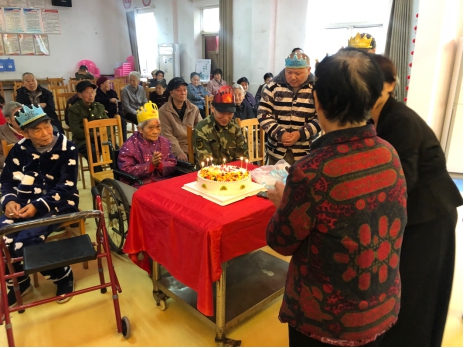 我院志愿者联合外国语学院积极分子一共准备了八个节目,现场气氛活跃。敬老院的爷爷奶奶们一个个都热情高涨。文艺演出结束后,伴随着生日快乐的背景音乐,志愿者们把准备已久的蛋糕推了进来,搀扶着过生日的爷爷奶奶许了愿望,并给在场的所有老人和敬老院工作人员分发蛋糕。整个敬老院里萦绕着爱的暖流,场面温馨感人,敬老院也因为同学们的到来而充满了青春的气氛。