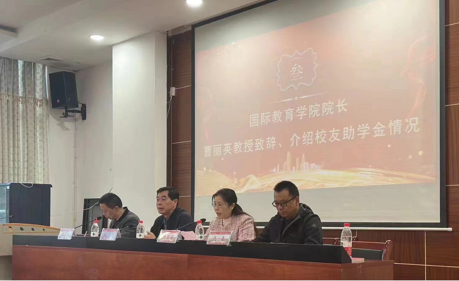 院长曹丽英介绍了戴延东、高瑕奖助学金情况,并对获奖(资助)的同学表示祝贺。希望同学们接过杰出校友戴延东夫妇的爱心接力棒,把党的关怀与社会各界的关爱转化为勤奋学习、刻苦钻研的内在动力,长本事、增才华、成栋梁。