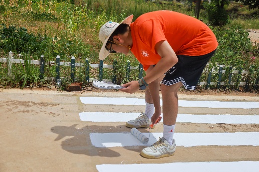 为了提升乡村道路安全性和美观度,实践团成员绘制了乡村首条特色斑马线,巧妙地融合了当地稻米种植的元素,使斑马线成为一道亮丽的风景线,同时也提高了村民的出行安全。