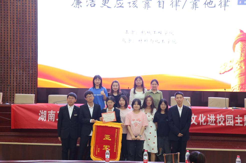 经过两个月的激烈角逐,最终机械工程学院与材料与化工学院两支队伍晋级决赛。决赛现场,辩手们围绕“廉洁更应该靠自律/他律’”这一辩题展开激烈辩论。开篇立论环节,正反双方引经据典,结合实例,对己方观点进行充分阐述。攻辩阶段,辩手们妙语连珠,言辞犀利,见招拆招。在最激动人心的自由辩论阶段,辩手们巧妙回答,掷地有声,同时紧抓对方漏洞,凭借扎实的语言功底和良好的综合素养予以有力回击。辩手们唇枪舌战,针锋相对,睿智灵活的答辩引燃了现场,观众席不时爆发出热烈的掌声。通过双方激烈的角逐,最终机械工程学院以9:6的比分优势获得本赛季团队冠军,材料与化工学院获得亚军。