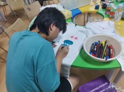 活动由学院心理部组织,心理部副部长王林主持。在主持人的引导下,大家积极参与,用画笔在白色T恤上自由创作。大家在轻松愉悦的活动中放松了情绪,释放了压力,增强了人际交往、沟通协调等方面能力。整个活动开展顺利,效果非常好。在最后的总结环节中,大家成功分享了自己的兴趣爱好,将自己喜爱的东西创作并展示出来,同时也丰富了自身的人际交往经验。
