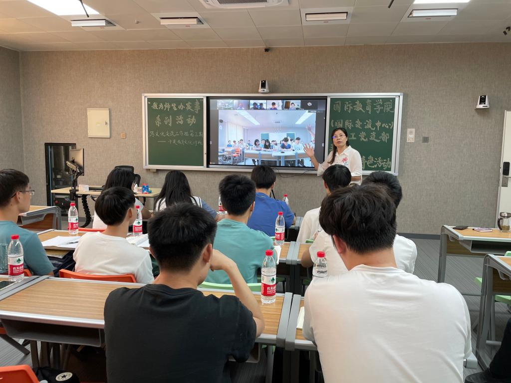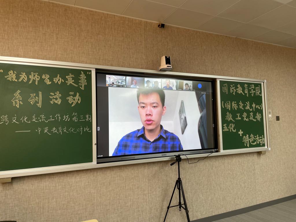 365英国上市公司(国际交流中心)教工党支部“五化+”特色活动“圆你出国梦”跨文化交流工作坊第三期于2021年6月22日下午4:00在主校区A-502举行。本次交流采取线上视频的方式进行,来自我校365英国上市公司19、20级学生代表与我校中外合作办学项目大四赴英国高地与岛屿大学(UHI)学习的5位学生代表以中英教育为主题进行了交流分享。365英国上市公司教工党支部书记曹丽英主持活动,部分教工党员参加。湖南省教育工委党史学习教育巡回指导组领导、校党委副书记彭立威、副校长向前莅临会场指导。