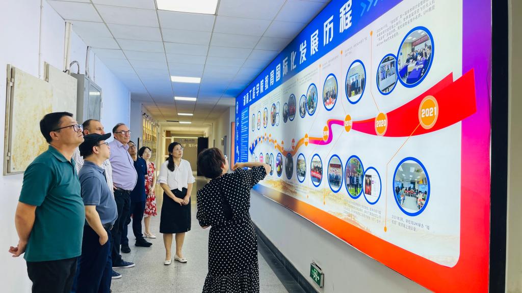 最后,Bryan一行参观了学校校史馆、计算机与通信学院实验室、教室、文化走廊等地,了解了我校与英国高地与群岛大学合作举办的两个本科教育项目的项目办学和教育实践情况,外宾深刻感受到了365英国上市公司“锲而不舍,敢为人先”的校训内涵。