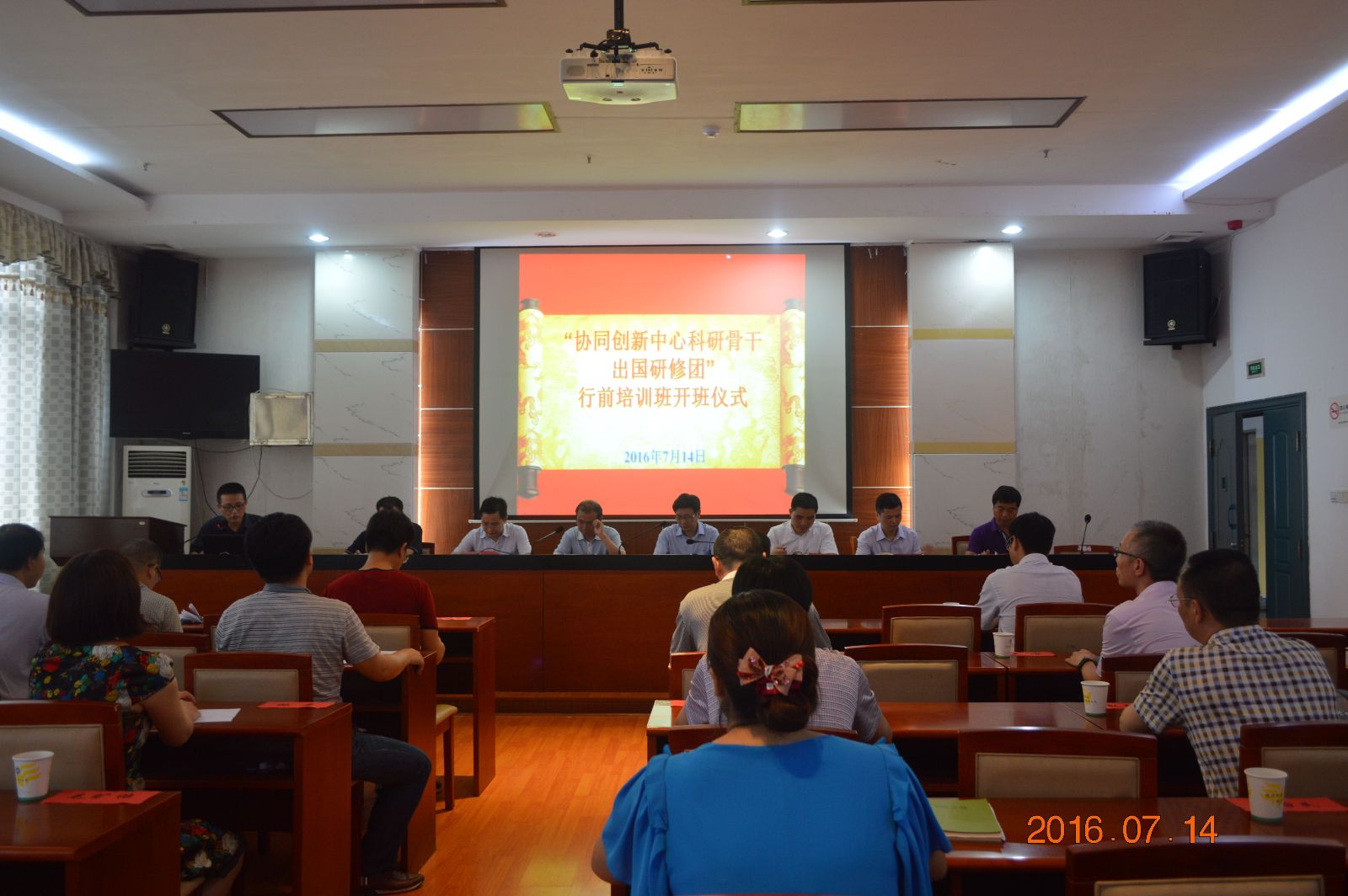 7月14日下午,我校“协同创新中心科研骨干出国研修团”赴UHI研修行前培训班开班仪式在中层干部会议室举行。副校长刘小波、罗毅平出席了开班仪式并讲话。参加开班仪式的还有国际交流处、科技处、人事处、教务处、研究生工作处和协同创新中心等部门负责人。
