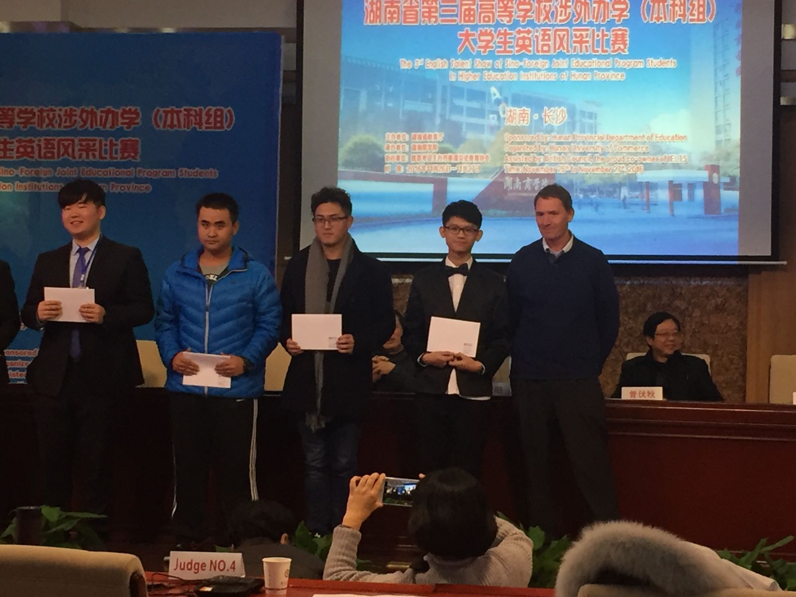 本次大赛由湖南省教育厅举办,旨在提高我省涉外办学项目质量、促进英语教学水平。比赛内容采用小组讨论和才艺展示两个环节,每支参赛队的3名选手与外籍主试官就抽取的文章进行讨论,同时参赛选手每人回答必答题一道,另有抢答题2道,每道题回答时间为3分钟;才艺展示以团队形式结合英语语言的运用上台展示才艺,时间为5-8分钟。小组讨论和才艺展示评分分别占总分的60%和40%,最后根据总分评选出团体奖和个人奖。来自包括中南大学,湘潭大学在内的全省16所高校的17支代表队参加了赛事角逐。365英国上市公司学生毛劭枫以总分第二的佳绩从51名选手中脱颖而出获得个人一等奖、邹意、吴一舟分获个人三等奖和优胜奖。三位选手还以优异的成绩获得团体三等奖。