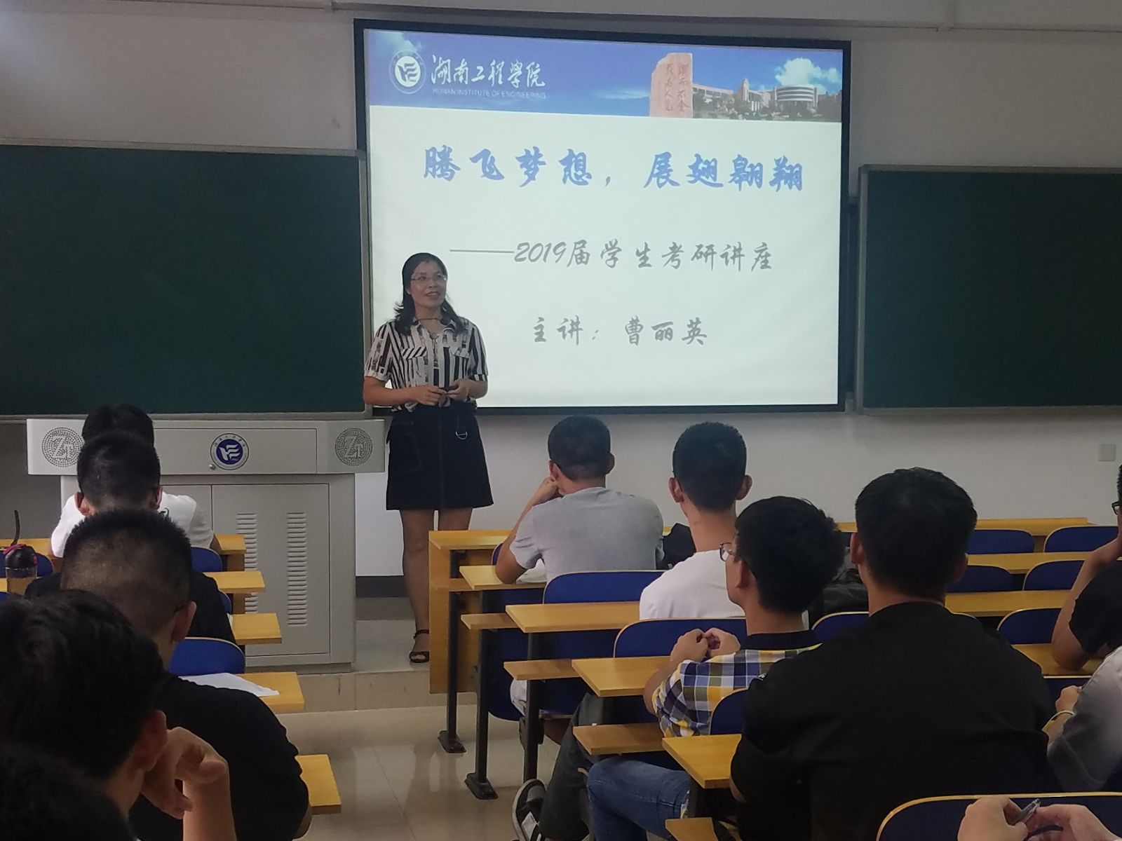 之后,曹丽英副院长为同学们做了题为“腾飞梦想,展翅翱翔” 的讲座。讲座分为规划篇、报考篇、复习篇和励学篇。分别从学业和人生规划,如何选择报考的专业、学校和导师,公共课和专业课的复习方法和技巧,如何保持淡定、从容、执着的考研心态等方面对学生进行了指导。最后,曹丽英副院长以“男儿欲遂平生志,五经勤向窗前读。”勉励大家,并预祝大家在考研的路上披荆斩棘、一路向前、成就梦想。