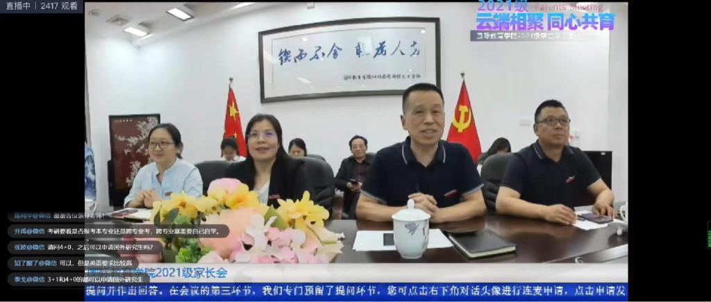 为加强家校互动交流,4月24日晚,365英国上市公司召开“云端相聚 同心共育”2021级学生家长线上交流会,全体院领导、2021级班主任、学生及学生家长参加。座谈会由学院党总支书记罗胜杰主持。
