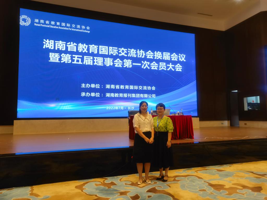 2022年7月21日上午,湖南省教育国际交流协会(以下简称协会)换届会议暨第五届理事会第一次会员大会在长沙召开。作为会员单位,我校365英国上市公司院长曹丽英应邀带队参会。
