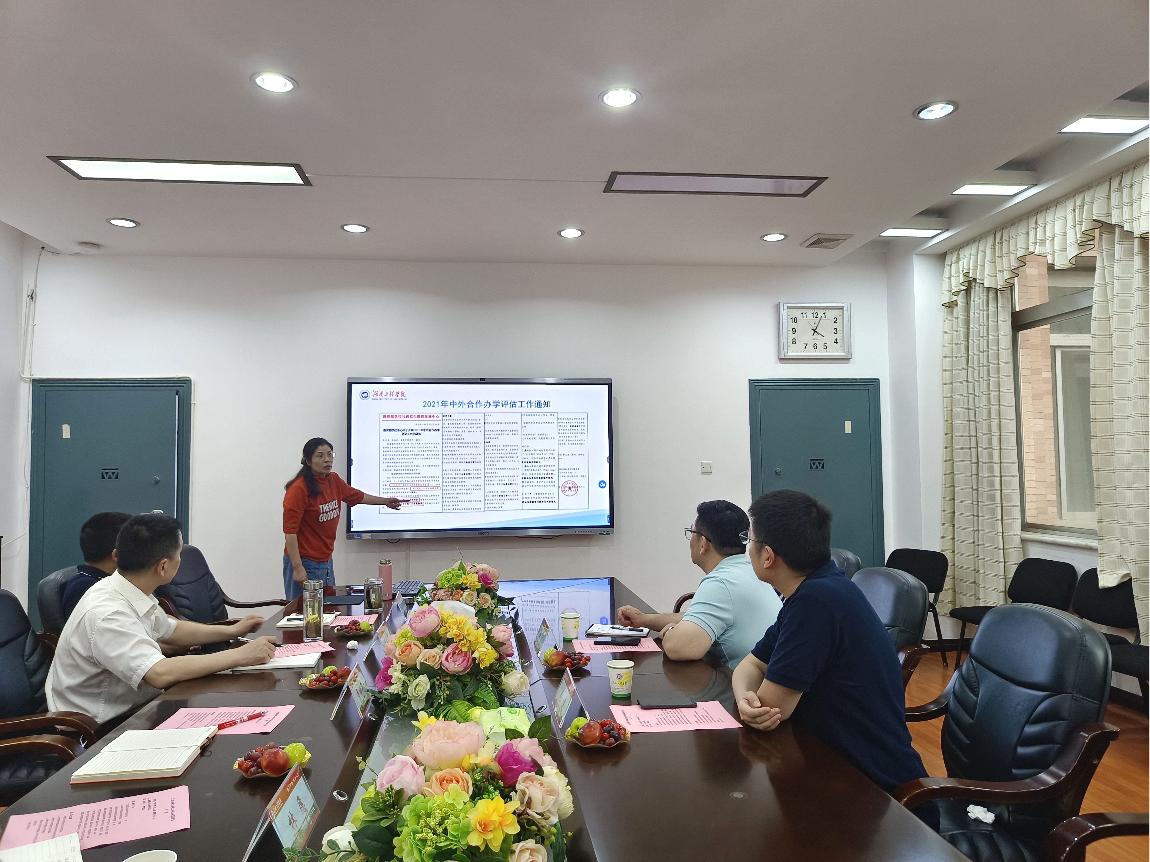 随后,双方分别介绍了两校校情及国际合作办学整体情况。罗胜杰、连泰、曹丽英分别介绍了我院党建工作、学生管理工作、合作办学项目运行及评估工作情况,双方还就英语教学、学生日常管理、教学体制创新、中外合作办学机构的申报及评估工作等交换了意见。