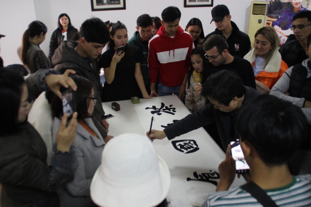 冬日暖阳照进来的午后,茶室飘香,古琴深沉悠远,氛围静雅。应国际学生的请求,大益茶体验馆负责人在现场还亲笔演绎了书法作品,并与同学们进行了互动,鼓励同学们爱上书法,陶冶情操。