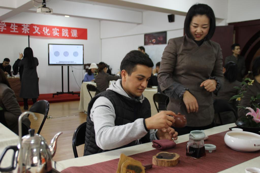 为丰富我校国际学生的校园生活,弘扬中国传统优秀文化,倡导文化栖心的生活方式,12月4日下午,我院国际学生在老师的带领下,前往大益茶体验馆,亲身感受了中国优秀传统茶文化的魅力。