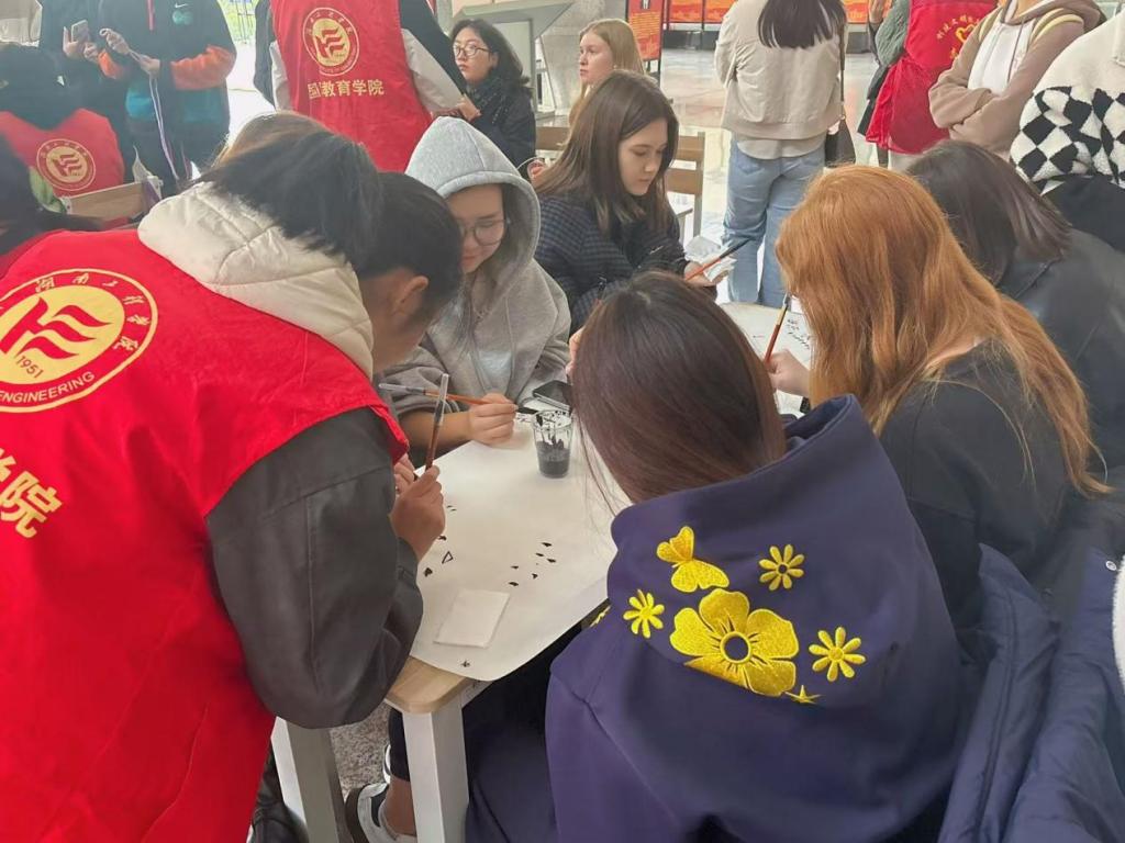 本次活动聚焦中华优秀传统文化传承,精心设置书法习作、中国结编织、剪纸制作三大核心环节。活动现场,学院的中文助教从历史渊源、技艺特点、文化寓意等维度展开讲解,带领参与者沉浸式体验传统手工艺的魅力。在书法环节,中外学子执笔蘸墨,一笔一划书写汉字之美;中国结编织区,红绳翻飞间,寓意吉祥的结艺逐渐成型;剪纸制作中,剪刀起落,窗花、生肖福字等传统图案跃然纸上,现场氛围热烈而温馨。