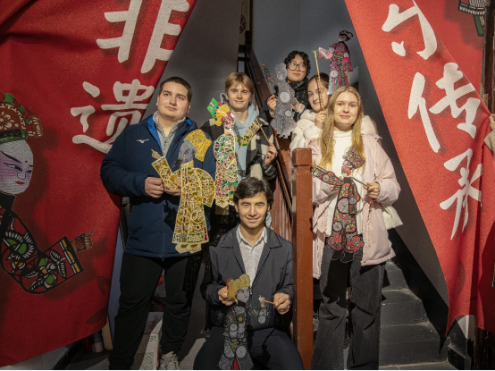 湘潭纸影传承人吴渊给学生们展示了一堂生动的中国传统文化课,他向大家讲述了纸影的历史和材质特征,介绍了经典的影戏剧目和角色,并现场互动,带国际学生参与实地表演。制作工坊的现场教学,是学生们最喜欢的环节,在老师的指导下,他们动手制作了属于自己的影偶角色。合影的时候,大家齐声赞扬:“古老非遗,快乐传承”。