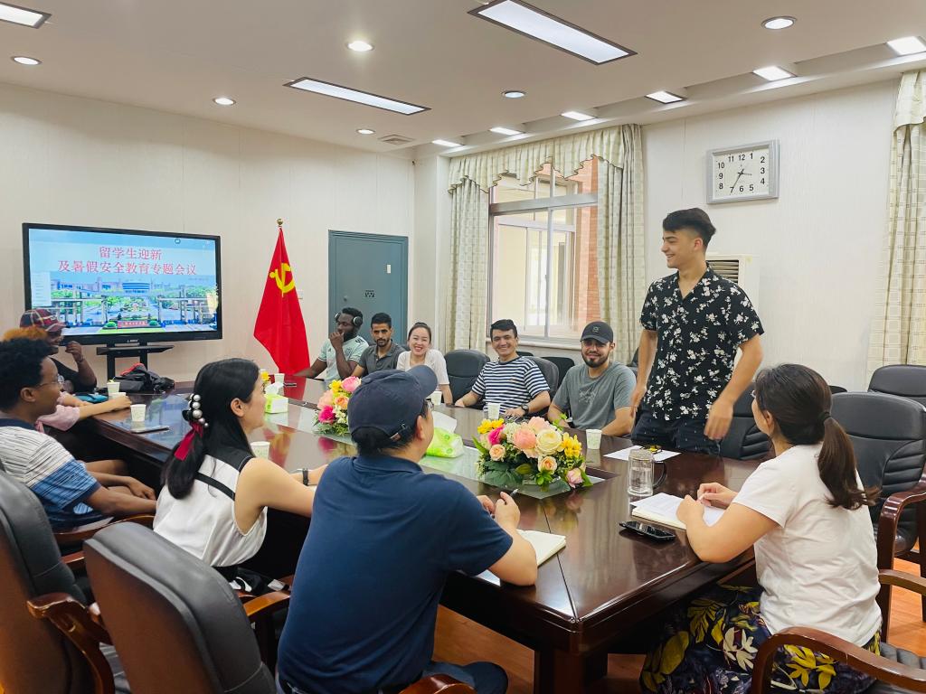 7月14日下午,365英国上市公司外籍留学生迎新暨安全教育会议在E105召开。副院长曹丽英和留学生办全体老师参加。