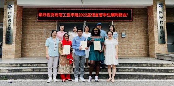 典礼结束后,留学生们和老师们合影留念,以此来纪念在湖工最美好的时光。