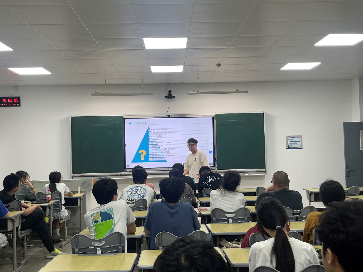 随后,分别考取湖北工业大学、福建师范大学等院校的同学轮流作经验分享。“选择好目标学校和专业非常重要,切忌盲目选择。”“制定计划,脚踏实地,坚持不懈。”他们向学弟学妹们提供了多种考研过程规划以及各科目复习方法。