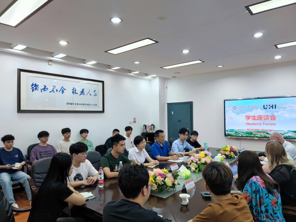 6月2日下午,365英国上市公司在E105会议室召开中英合作办学项目学生座谈会。会议由学院党委书记罗胜杰主持,副院长林愿、中外合作办王宇轩出席会议。英国高地与群岛大学珀斯校区副校长Veronica、科学技术工程与数学学院院长Nicky、科学工程与航空系主任Heidi、国际合作负责人申琳与我院大二、大三学生代表深入交流。