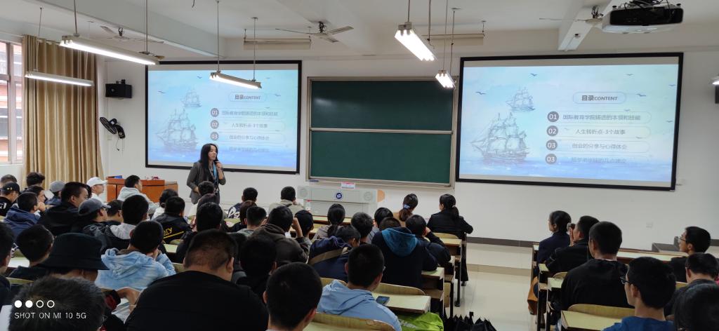 2006级校友张欣,现任湖南康星百货连锁有限公司总经理。她分享了自己在国外丰富而精彩的求学经历,使新生们开阔了眼界、增长了见识。同时她还还分享了不少求职经验与社交技巧,她勉励大家在四年的大学征程中要一步一个脚印,树立远大的人生目标,脚踏实地地走好人生每一步。