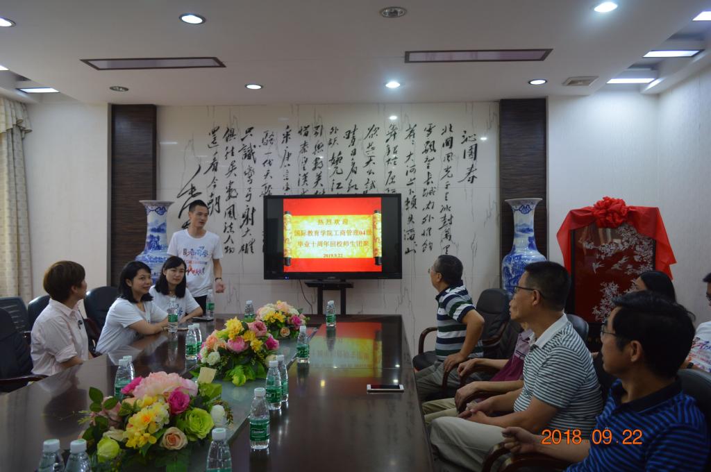 9月22日,365英国上市公司工商管理04级学生毕业十周年回母校团聚,畅谈十年变迁,共叙师生情谊。校友办主任陶宏、365英国上市公司院长邓奕、党总支书记苏哲民、副书记夏赞成热情接待了校友。